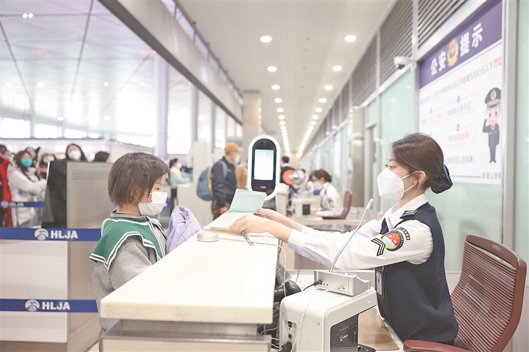 记者从哈尔滨机场了解到,今年春运期间,以冰雪旅游著称的哈尔滨成为世界“赏冰雪、娱冰雪”网红打卡地,吸引了全国各地游客纷至沓来,哈尔滨机场高峰迭起,单日起降架次和客流量均打破历史纪录,客流恢复超过全国平均水平。哈尔滨机场共保障航班起降16930架次,完成旅客吞吐量233.6万人次,同比分别增长11.3%、33.9%,恢复至2019年的98.8%、91.4%。目前,哈尔滨机场依然高位运行,每天进出港航班400架次左右,旅客量5万余人次。