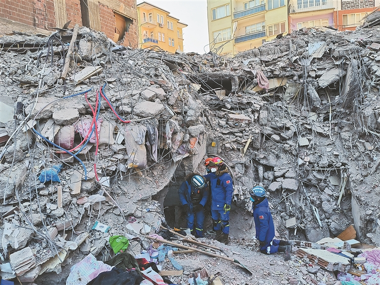“从工作区域撤离时,负责现场安保的土耳其军人眼含热泪地说出‘Thank you,Bye Bye!’。翻译告诉我们,随着我们救援工作的结束,现场的军方也会转移到其他区域参加后续的救援行动,他们一直感谢中国救援队伍不远万里援助他们。”大庆队的韩露告诉记者。