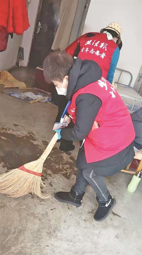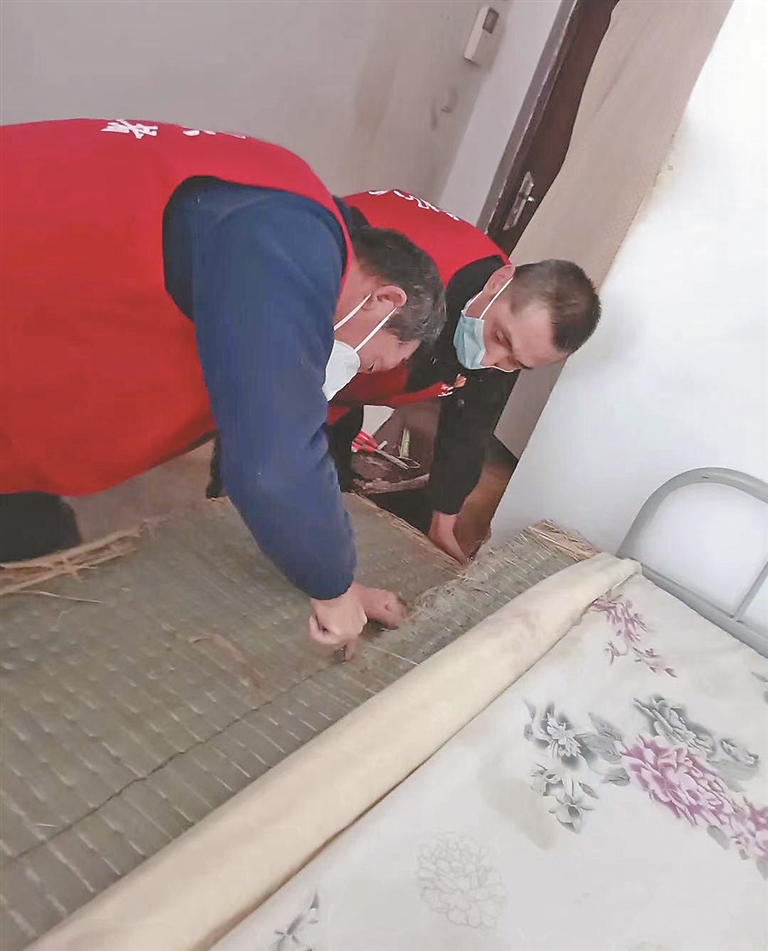 到刘洋家后,志愿者们脱下外套就拿出清洁工具,开始帮刘洋打扫房间,每一个角落都擦得非常干净。赵忠良、许卫华、王长辉三人共同将刘洋的床辅重新修理,“之前的床垫破得不像样子,他经常盘腿坐在上面,脚踝骨处都磨破了。”赵忠良心疼地对记者说。志愿者许卫华说,“这次给他修理了床辅,下次给他带新的床单、坐垫来。”“赵大哥,过几天你来一趟,跟我去办理一下电话卡,再去看看牙。”刘洋对赵忠良说。赵忠良毫不犹豫地答应了,“只要刘洋有需要,能帮的一定帮。”