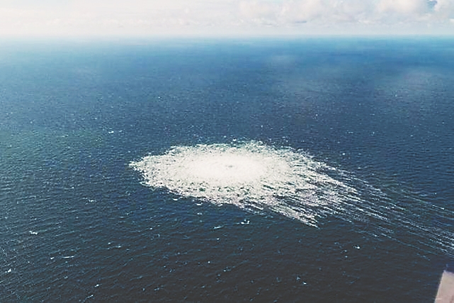 丹麦国防部2022年9月27日发布的照片显示一处“北溪”天然气管道泄漏点。新华社发