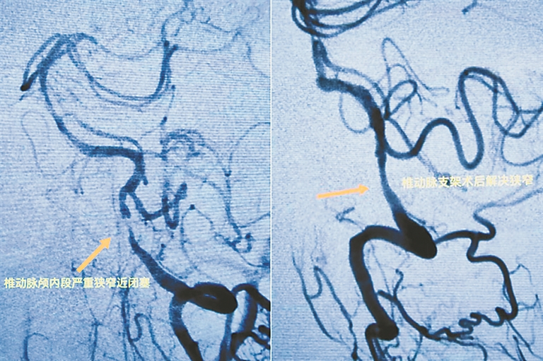“正常情况下,脑梗不会发作这么频繁,这说明老人还是有病变的地方。我怀疑之所以反复发作,有可能是椎动脉颅内段重度狭窄病变。”神经外一科孙国章主任医师说。经进一步检查,果然,李大爷不仅椎动脉颅内段有重度堵塞,且左侧颈动脉也堵得很严重,两处都已经几乎全堵住了。