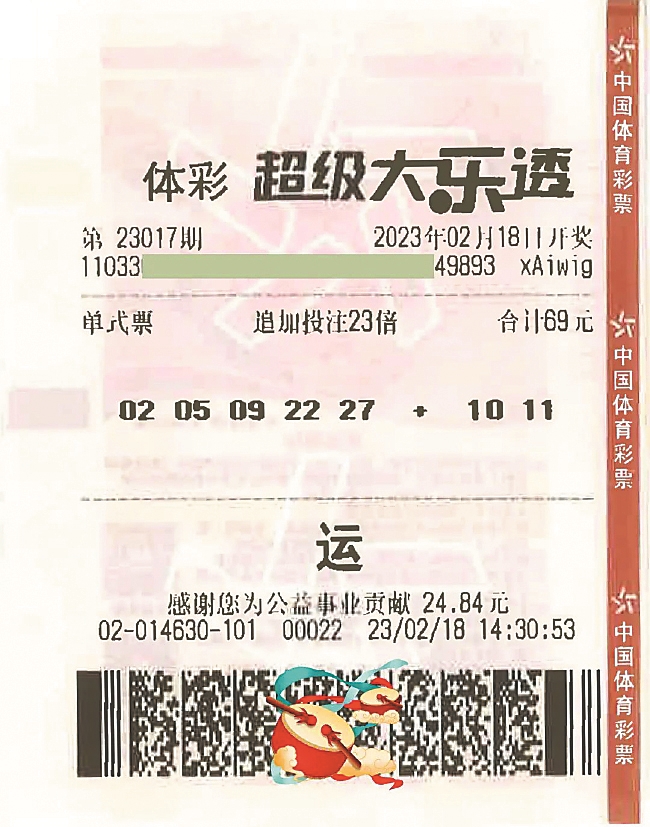 生活报讯 (雪尘) 18日晚,体彩大乐透第23017期开奖,宁波购彩者张先生凭借一张69元投入的23倍投单式票,揽获2.4亿巨奖。3天后,张先生现身领奖,同时向浙江省体育发展基金会捐赠100万元。
