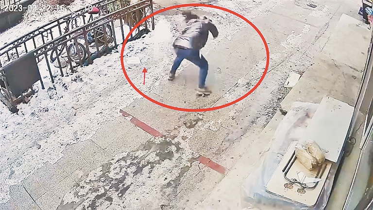 记者从一段视频中看到,事发时,该女子在小区楼下站着,突然一声巨响,一块冰溜子从高处坠落,女子由于躲闪不急,被冰溜子砸在了身体上,女子当场倒地不起,不断呻吟着。随后有人拨打了报警电话。