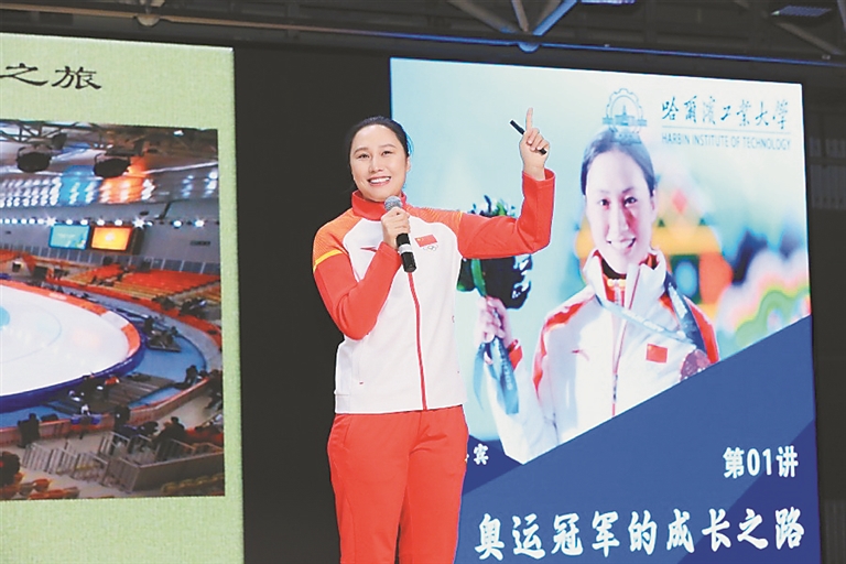 生活报讯 (记者吕晓艳) 24日晚,由哈工大奥林匹克研究中心和虹基金共同打造的“奥林匹克大讲堂”,在哈尔滨工业大学举行启动仪式,并正式开讲。作为中国冬奥速度滑冰首金得主、国际奥委会委员、哈工大研究员,张虹与广大学子面对面交流,分享了奥运冠军的成长之路。