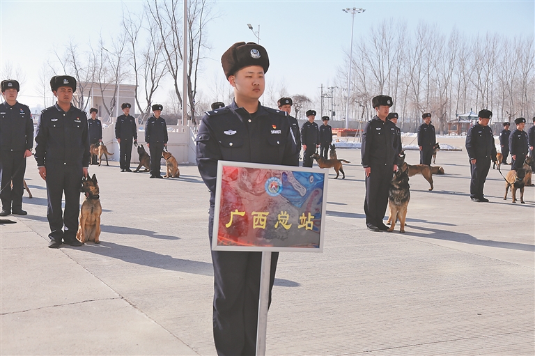 据了解,来自全国七个边境省份的出入境边防检查总站的53名带犬民警,在黑龙江出入境边防检查总站哈尔滨警犬训练基地结束了为期15天的培训,53名带犬民警将带领自主繁育的53头警犬奔赴一线执行边境勤务。