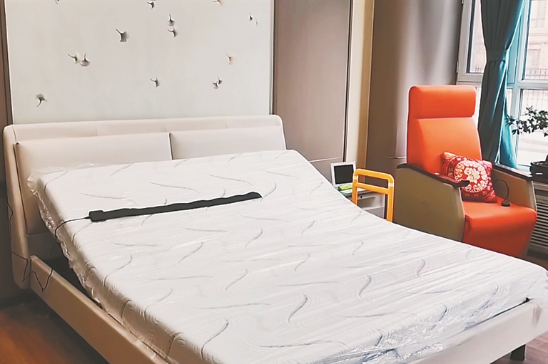 记者看到,洗漱台常规固定的台面,被做成了可升降式。只需按下启动键,老人可将台面调整至自己舒适的高度,坐着轮椅也能轻松洗漱。电动起卧床更是采用全自动电动升降模式,通过电动遥控按钮就能让卧床老人轻松自主升降,为老人提供舒适的睡眠角度和姿态,有效减轻护理者工作量。床边扶手让老人轻松起床不费力,保护老人腰部,防止老人因起床晕眩而不慎跌倒。