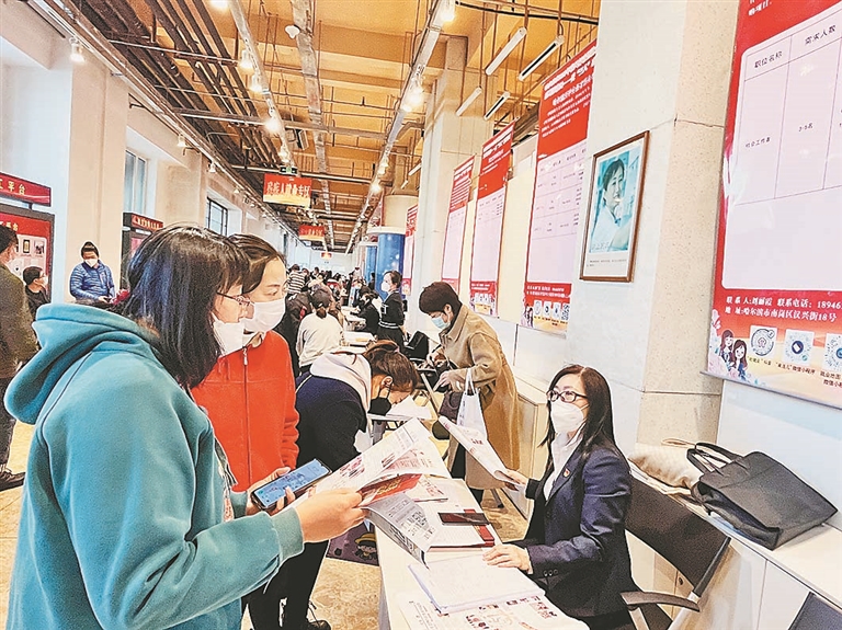 生活报讯 (记者刘维娜) 8日上午,哈尔滨市人力资源和社会保障局、哈尔滨市妇女联合会举办了“哈尔滨市2023年春风行动暨就业援助月系列活动四——庆妇女节系列专场招聘活动”。当天共有110家企业提供岗位8000余个,涉及家政服务、手工编织、酒店餐饮、批发零售等行业,现场签订意向性协议364份。