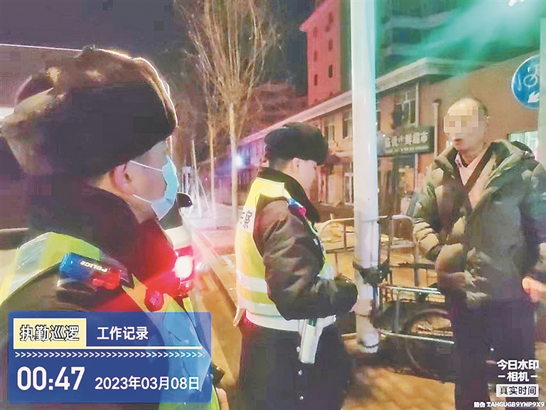 8日0时47分,交警平房大队二中队的张超、洪飞、李吉宁正在辖区内巡逻,突然看到一位70多岁的老大爷迷茫地站在街上。民警们连忙上前查看,此时的老人冻得瑟瑟发抖。经过询问得知,老人从吉林珲春来,此次他是来哈市办事,所以他想要投奔家住哈市的大舅哥和其他亲戚。因为最近一次来哈市已是十多年前,他坐长途客车来到平房区下车后,就找不到方向了。民警经过多方联系,最终将老人送到亲属家中。老人的亲属连连对民警表示感谢:“假若遇不到民警,老人这一夜可能就会冻坏了,多亏民警的细心和耐心了。”