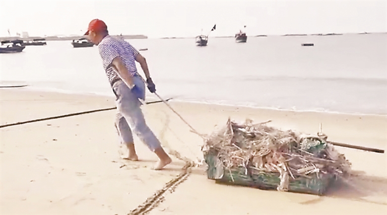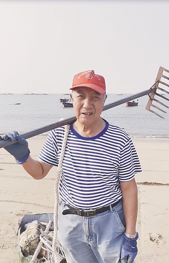 老人叫汪敏江,黑龙江人,今年86岁,退休前是一位工程师。2020年他来海南过冬,住在海南乐东龙栖湾某个度假区,经常在沙滩上散步。“大海是我们的母亲,我们要关心她、爱护她,就要把垃圾源切断。”汪敏江说。埋在沙滩下的废弃渔网,他用钉耙一点一点挖出来;看到废弃的玻璃瓶和贝壳,他掏出随身带的小铲刀跪在沙滩上抠出来;看到丢弃的死鱼烂虾,他戴上手套一个一个捡起来……三年来,汪敏江每天7时至9时、18时至20时,两次到海边沙滩捡垃圾,装到用废铁皮自制的简易垃圾盒里,拖到岸边的绿皮大垃圾箱里。