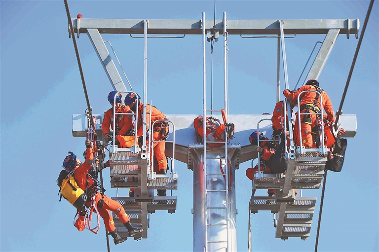 生活报讯 (记者肖劲彪) “索道缆车突发故障,一名游客被困吊箱!”近日,一场紧急“救援”在大庆航空救援支队训练场上演。