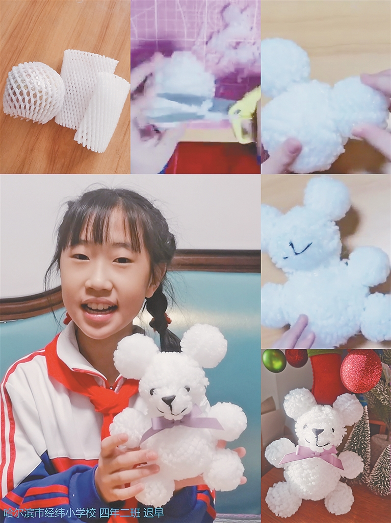 我的小北极熊是用水果的保护网制作的,一般人会把这些保护网扔掉,可对我来说,它们是宝贝。经过我的修剪粘贴,它们就变成了可爱的玩偶,这样变废为宝的作品你喜欢吗?
