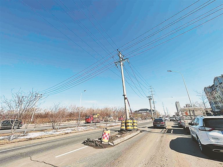 随后,记者联系了哈尔滨新区供电公司。供电公司生产副经理闫雪松介绍,龙轩路的电线杆是一条10千伏线路,负责周边1000余户居民和企业供电。去年7月,按照松北区政府投资项目建设服务中心要求,将线路拆除改为电缆,前期手续已经办完,按照计划是去年底施工完,但在施工过程中有一处耕地没有征收完,导致施工无法进行。下一步将积极与有关部门沟通,具备施工条件将马上进场施工,将车行道上的电线杆移走。