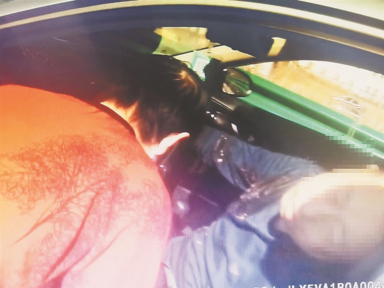 民警打开车门的时候,车已经向后溜车了,十分危险。出租车上吐血的司机大约50余岁,出租车来自绥化海伦,他带妻子来哈尔滨的儿子家,事发时,副驾驶坐的是司机的妻子。