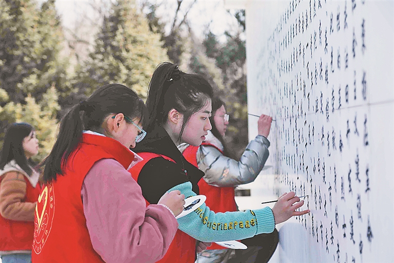 生活报讯 (王惠 记者吕晓艳) 清明节将至,18日早,哈师大美术学院“我为英雄绘彩虹”志愿服务队乘车抵达大庆市,为革命烈士纪念碑描写碑文,以实际行动缅怀革命先烈、传承红色基因。