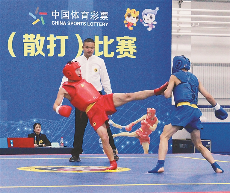 生活报讯 (胡志远) “鞭腿!”“进攻,时间还剩10秒!”“加油!漂亮!”喝彩声、加油声此起彼伏。15日,“奔跑吧·少年”黑龙江省第十五届运动会武术(散打)比赛在哈尔滨市冰球馆落幕,中国体育彩票支持了此次比赛。