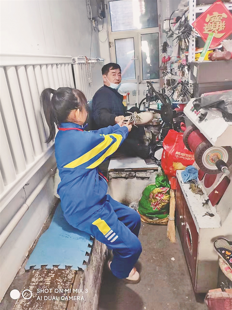 “鞋开线了、拉锁坏了随时来修。”19日,佳木斯市桦川县悦来镇邮政局马路西侧的两楼之间,一间8平方米的修鞋店里,两位穿着校服的学生从店主的手里接过修好的球鞋后不住道谢。
