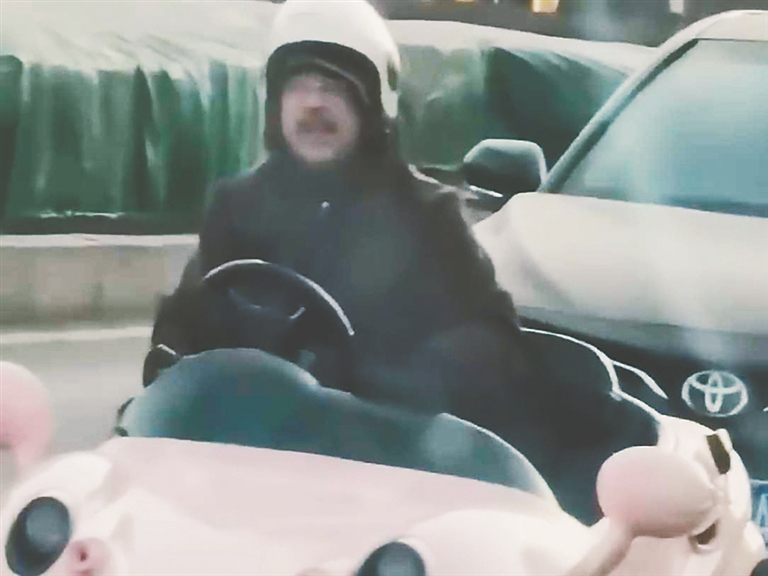 男子开“卡丁车”上路兜风 耍帅不成反被扣车处罚