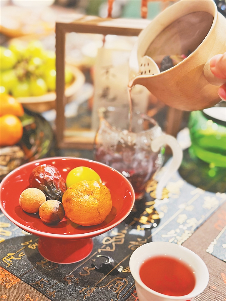 店内各色茶品均有,价格从数百元到数千元不等,包装有简有繁,还可提供定制服务,尤其围炉煮茶最受年轻人青睐,几百元套餐,有茶、有果,十分丰富。看那透亮的茶水,临墙而立的茶杯,三五好友的真挚寒暄,也变得意境感满满。茶饼的故事,围炉的规矩,在这里都被赋予了新的意义。