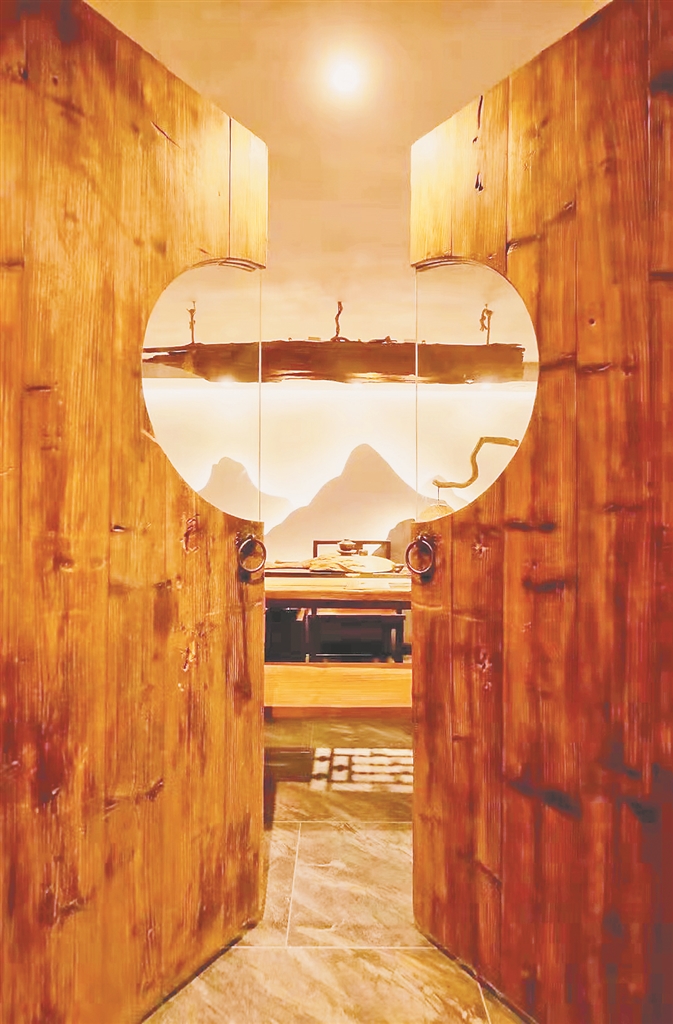 老板坐在茶桌前,依次排开冲泡茶品器皿,认真进行冲泡的一个个步骤。耳边是古筝声声,身旁是绿植拂袖,透过木门的缝隙,更是看到了屋内一隐蔽茶室,幽静的灯光下,哪怕是坐坐也会让您感叹恍如隔世,通透生活中的不惑。