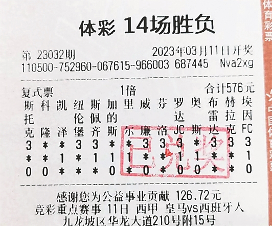 令陈先生和其他团队成员没想到的是,正是这一试,让他们仅仅在半个月后就凭借一张复式票成功拿下足彩14场胜负游戏第23032期1注一等奖和9注二等奖,收获总奖金176万余元。