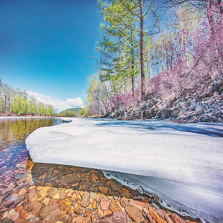 冰河绿柳红花相映成趣 呼中独特景观世界难寻