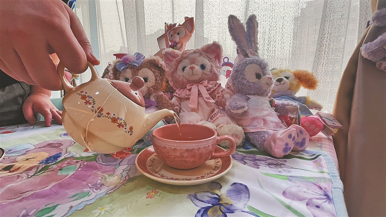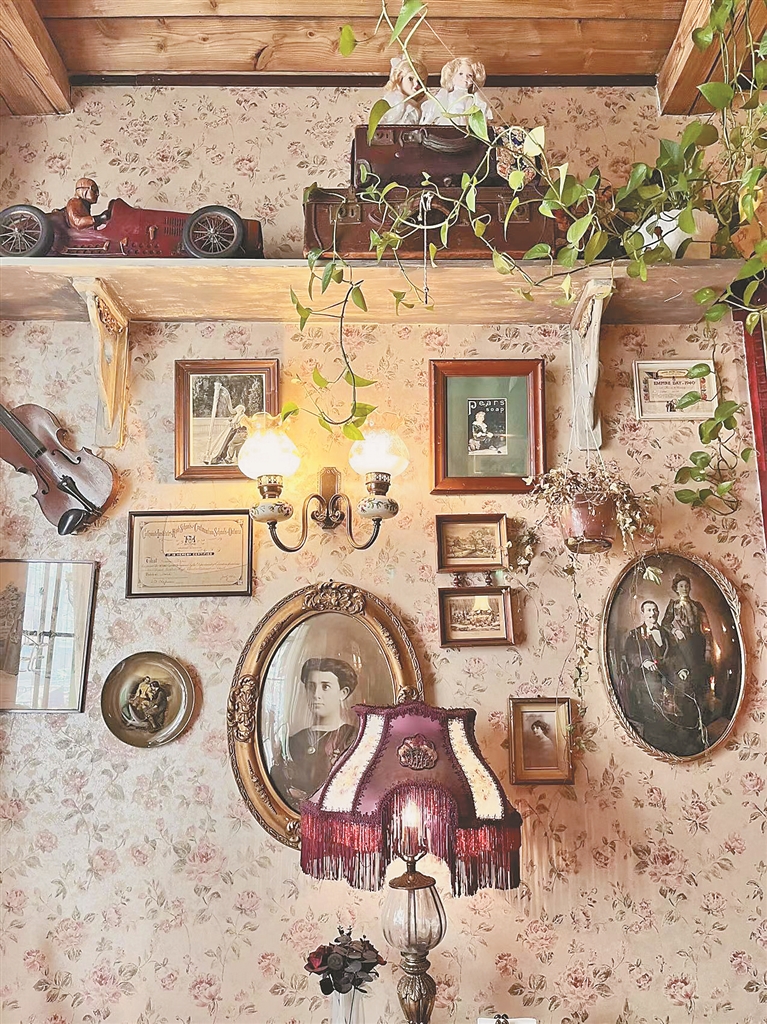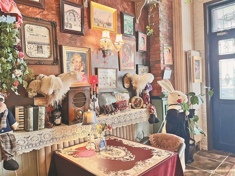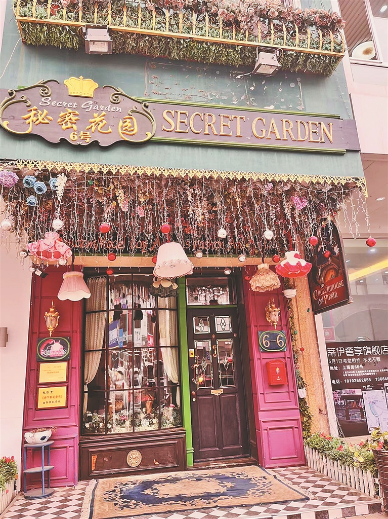 粉绿蓝配色的门头,站着迎接顾客的兔子先生,满室的鲜花壁画让客人如临仙境……爱建社区的丽兹秘密花园餐厅,外观上凸显着与众不同,屋内更是另有乾坤:两层楼的西餐厅被各种收藏品、鲜花还有复古装饰堆得满满当当。与其说这里是西餐厅,倒更像是复刻了爱丽丝梦游仙境里的场景。“我们老板喜欢收藏各种各样的东西,最开始这里只是个人收藏室,后来觉得别人看不到这些收藏品很可惜,于是做成了一个餐厅。”面对记者的来访,店员侃侃而谈,“现在因为有太多人慕名打卡,比较珍贵的藏品都收起来了。”