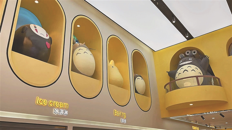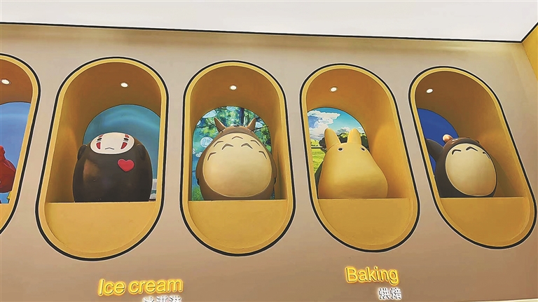 无脸男、龙猫、波妞,宫崎骏动画里的各种卡通人物,整整齐齐地排在一起,让人犹如置身动画世界;大屏幕上滚动播放着经典的动画片段,和卡通人物相呼应;手提袋都是龙猫的造型……你能想象这样的场景竟然出现在一家超市里吗?“这个超市东西很全,而且进来以后看着这些卡通人物也很可爱,挺吸引人的。”正在购物的刘女士告诉记者。