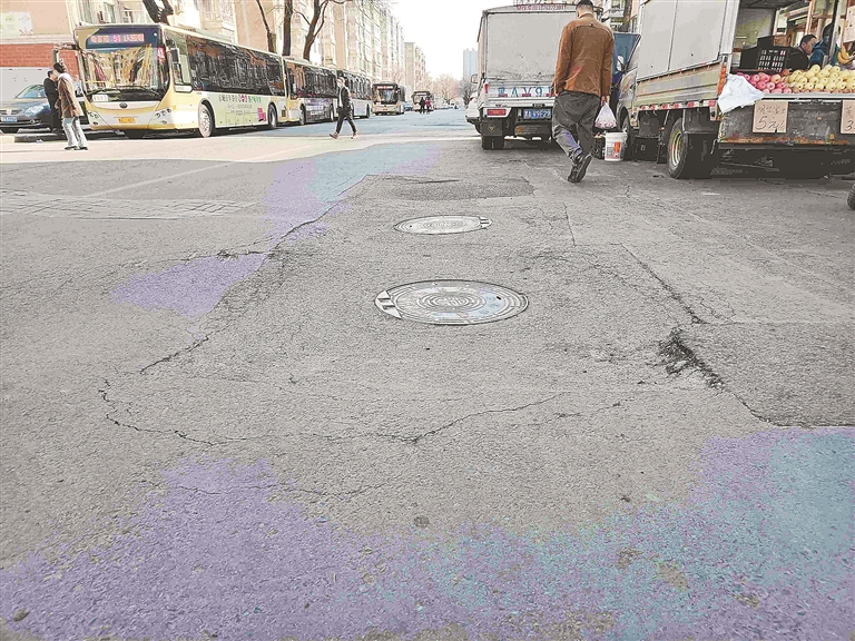 附近商户介绍,路面破损大概出现在半个月前,之前是另一侧道路出现了这种情况,已经进行了维修。最近这里又破损了,不知道什么时候能修好。商户说,“这附近的道路每年都需要‘缝缝补补’,不是今天这坏了就是明天那坏了,附近也没有什么大车经过,咋能总坏?”