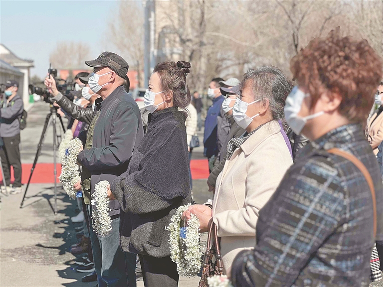 纪念活动上,宣读了海葬公祭祭文,并视频连线大连海上逝者骨灰抛撒地的海葬工作人员,两地同步举行祭礼,共同祭奠逝去亲人。哈市现场市民共同向海葬逝者默哀,鞠躬致敬,并依次献上鲜花和黄丝带。