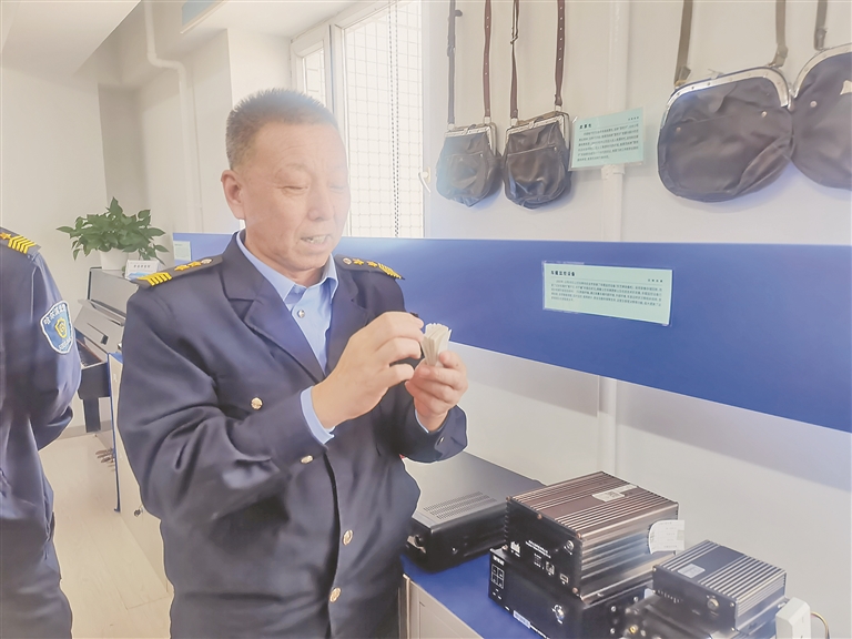 “那时候大冬天三九天,每天凌晨3点起,坐着没有窗户的通勤车到车队去整备出车,老遭罪了。”“现在公交车都带助力的,不像那时候过转盘膀子都抡飞起来。”“你看这个票兜子,老结实了。这票我现在还能很快叠出来,方便给乘客撕下来。”“人员调离、乘车证、月票等等都需要用到钢印。”……老公交驾驶员们边看边说。