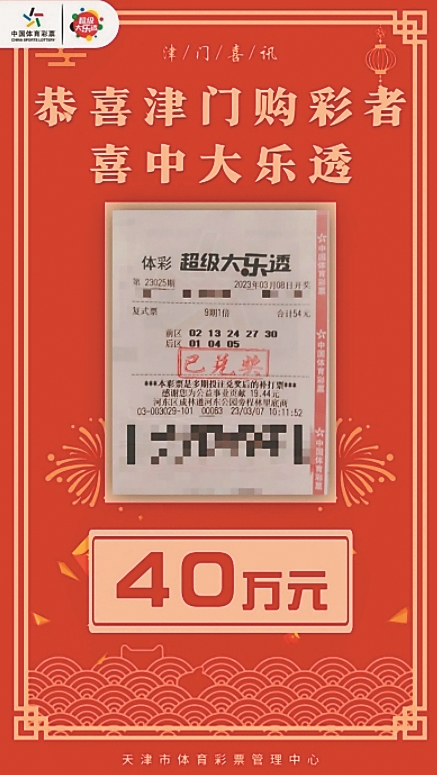 生活报讯 (传和) 3月11日,大乐透第23026期全国开出90注二等奖,单注奖金19.9万元。其中2注二等奖喜落天津,且出自同一张彩票。因为这张中奖彩票是一张复式多期投注票,所以除了斩获2注二等奖之外,还收获了1注三等奖,中奖金额合计40万元。
