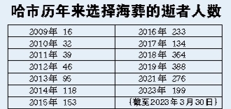 为持续性推进节地生态安葬,哈市从今年起将常态化开展海葬活动,全年接受报名,不限时间,达到一定数量便开展海葬活动。报名电话0451-963913。