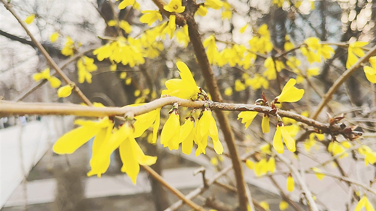 为何以往四月中旬才绽放的东北连翘会提前半个月开花呢?哈市园林专家介绍,由于哈市近期温度持续攀升,最高温一度超过20摄氏度,积温高、生长环境好等利好因素,促进了东北连翘的提早开放。