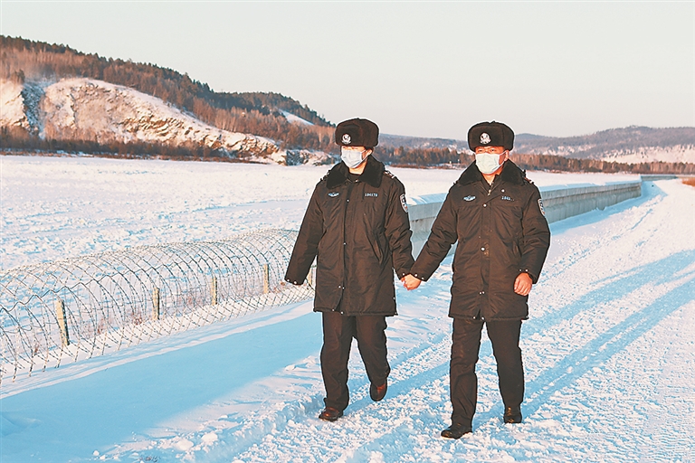 一个漠河冬季的凌晨时分,刚从界江上巡查回来的戍边民警史先强,抖了抖警服上的冰雪,轻手轻脚地推门进屋,生怕吵醒熟睡的妻儿。因为经常不定时到界江重点地段查看一圈,有时是天刚亮,有时是半夜。三年里,这一幕就是他再寻常不过的日常。