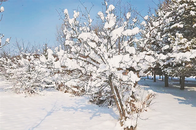 这次降雪因含水量大,积雪粘稠,纷飞的大雪,将整个小镇装扮成了童话世界。放眼望去,天地间白茫茫一片,街道两旁的树梢间朵朵“梨花”绽放枝头,行走其中犹如人间仙境,美不胜收,引得当地摄影爱好者、航拍爱好者竞相拍摄。