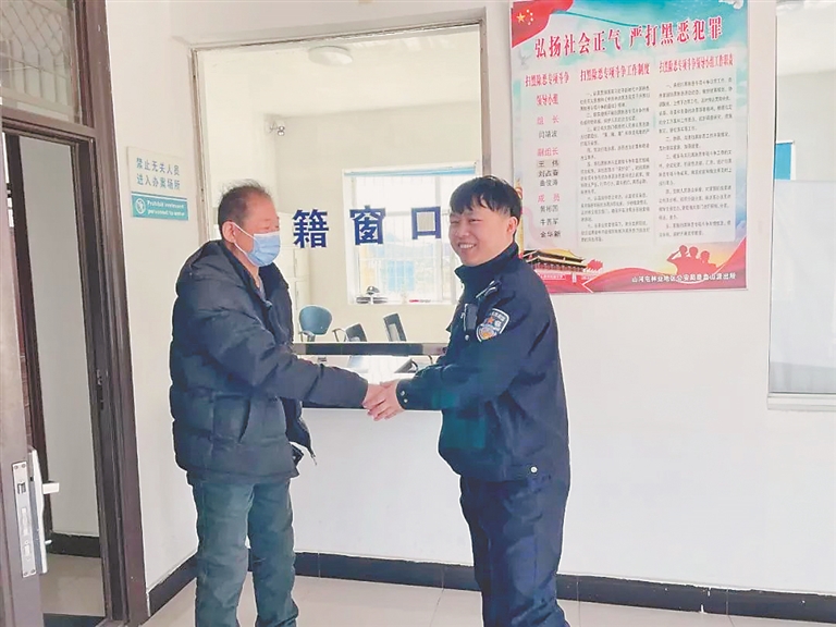 戴启芳老人获得老师的联系方式后,握着民警的手激动地说:“如果没有你们的帮助,可能我再也无法见到自己的老师了,太谢谢你们了。”