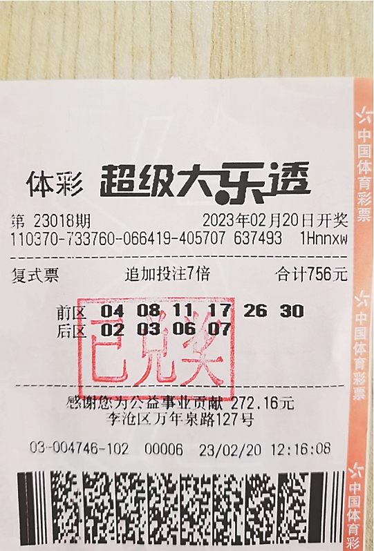 体彩超级大乐透第23018期开奖号码为:“04、08、17、26、30+03、11”。本期二等奖开出152注,每注奖金8.71万余元,其中60注采用追加投注,每注多得奖金6.96万余元。追加后,二等奖单注总奖金15.67万余元。