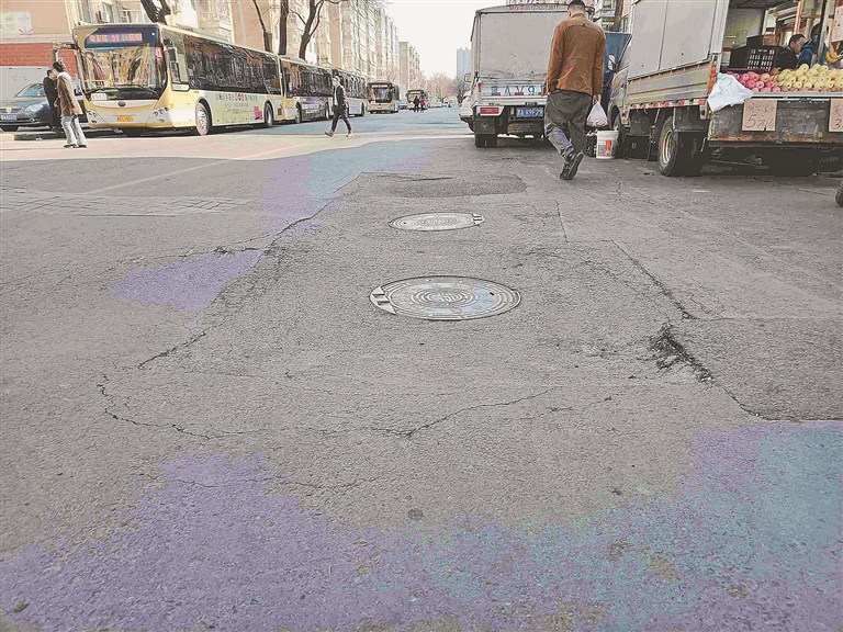 此前报道中,桦树街和南棵二道街交口的路面破损长度在百米左右,一个坑挨着一个坑,乘车路过像坐“过山车”。