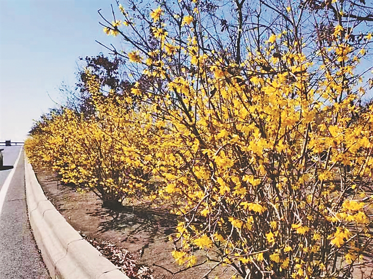 在三环路路侧绿地新植1800株东北连翘,栽植面积3500平方米。同时,位于城区的三合路分车带两侧现有的800延长米连翘花也已竞相开放,为城区打造了“香坊真香”的“迎春”花海景观带。