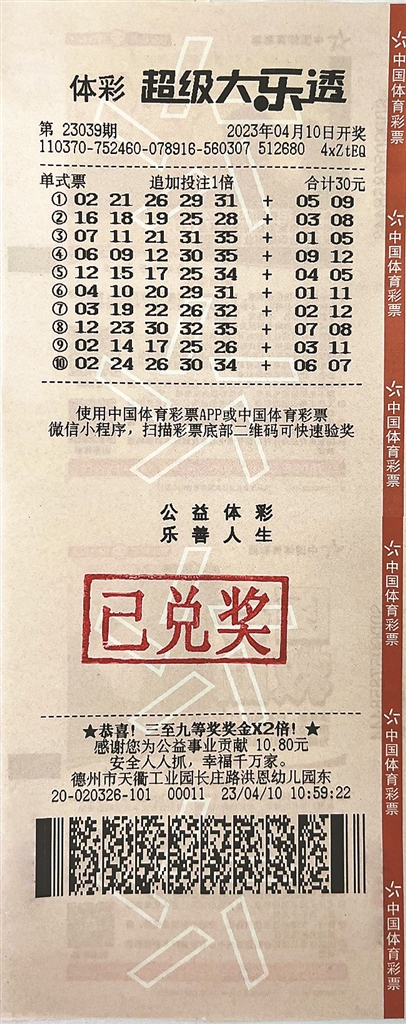 生活报讯 (于正) 日前,山东省德州的辛女士现身体彩中心,兑领大乐透3299万大奖。辛女士4月10日晚中得了大乐透第23039期一等奖,因为是超级大乐透10亿大派奖首期,她擒获的是一注3299万元超值一等奖。