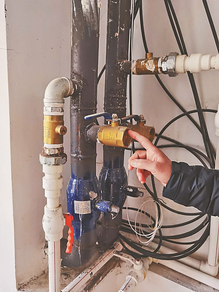 记者随机走了几个单元发现,一楼靠近单元门内,并排着几条供热管线,各种阀门裸露在外。居民代表王先生说:“这些大大小小的阀门就这么裸露在外,而且都在低处,碰到淘气的孩子随意扳动,后果不堪设想,应该弄个盒子把这些阀门封闭起来,更安全和美观。还有,所有的供热排污阀都应该安装在管线的最低处,这样有利于排出污泥,而他们将排污阀都安装在距离地面一米左右,这样起不到任何作用,就是个摆设。”