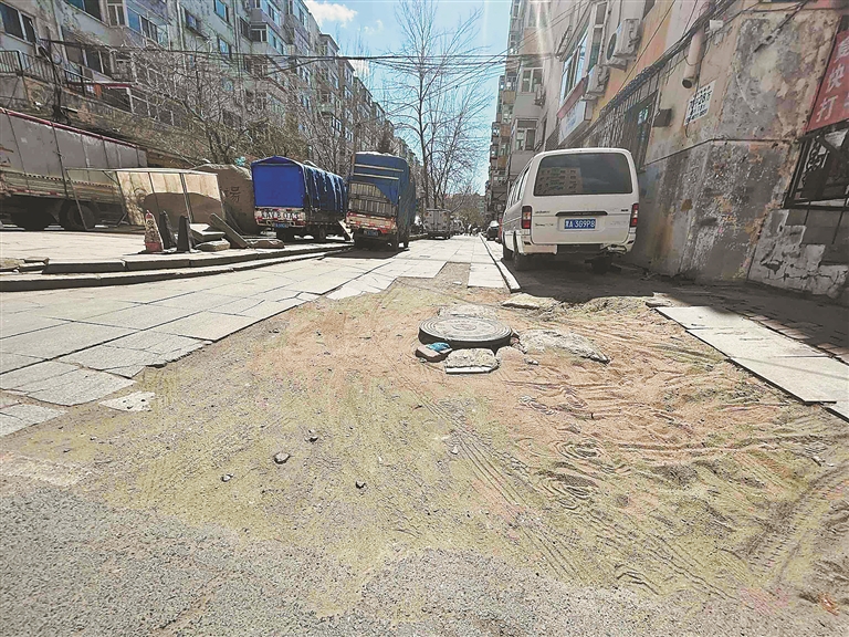 生活报讯 (帮办记者肖劲彪文/摄) 日前,有市民反映,在哈尔滨市道外区育民街与南十一道街交口处,路面上的大理石砖缺失很久,多次向有关部门反映也未得到解决。21日上午,记者赶到现场采访。