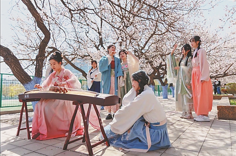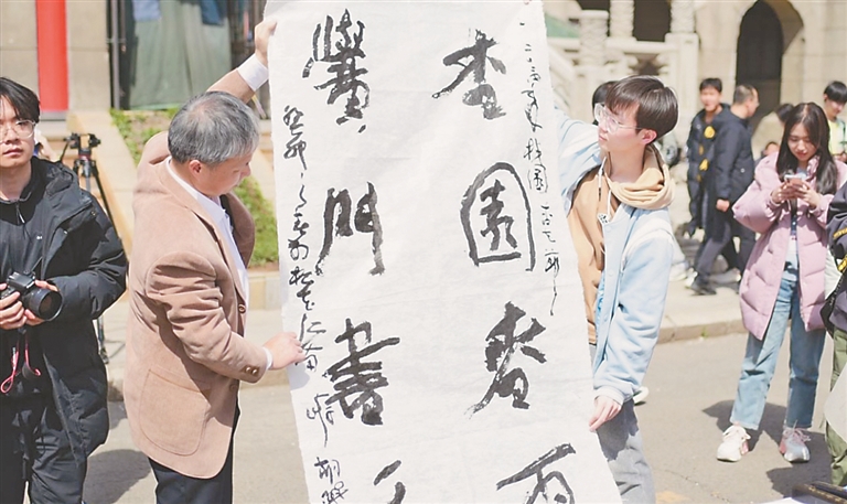 生活报讯 (朱虹 何雨竹 记者吕晓艳) 24日,哈尔滨工程大学为迎接七十年校庆,举办“七秩育才,杏林有信”活动。同学们以杏花为媒,身着汉服的女子乐团拨动琴弦,悠扬的古筝曲调响彻长廊,仿佛坐上时光机。师生们围聚在一起,挥毫泼墨,写信致10年后的学弟学妹,诉说今日心情,传承杏林育人文化。