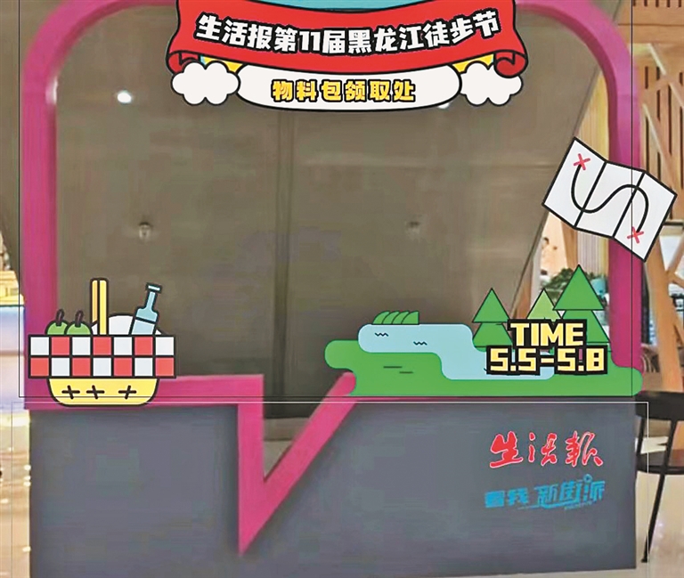 领取地点:哈市道里区埃德蒙顿路38号凯德广场一层周大生店铺旁(注:现场有生活报第11届黑龙江徒步节物料包领取处展板)