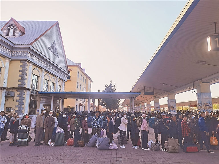 哈铁插秧专列迎客流高峰 记者直击
