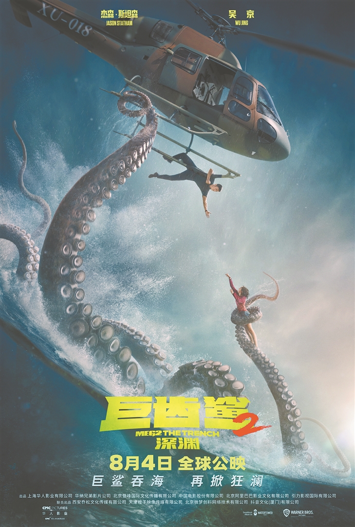 生活报讯(记者 王雪莹)时隔五年,史前巨兽回归!记者从金安国际影城获悉,由杰森·斯坦森、吴京主演的《巨齿鲨2:深渊》将于8月4日上映。此次,不仅冒险加倍,故事也将全面升级。