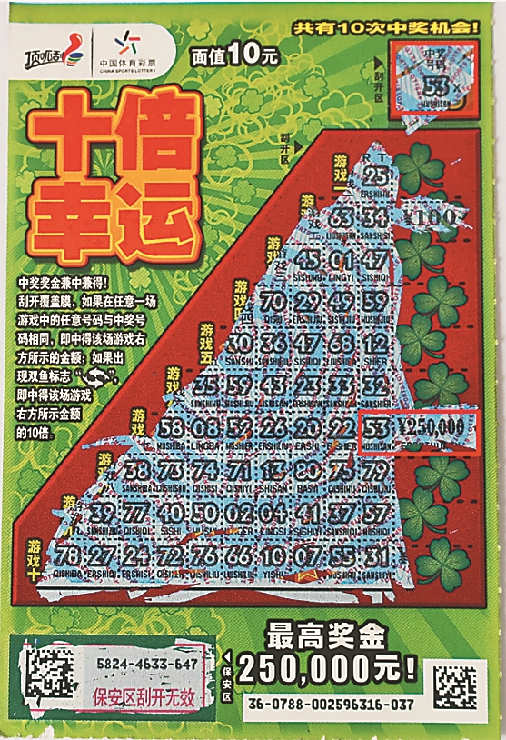 据了解,中奖老人张奶奶今年80多岁,退休后开始买体育彩票。在众多玩法中,张奶奶尤其对即开票情有独钟。“五一”那天,她到常去的体彩店里买了两张常刮的“十倍幸运”就刮了起来。在刮开第二张时,“游戏七”中的“53”和“中奖号码”的“53”完全匹配上,当时张奶奶刮开后面的奖金,看不太清以为是250元,让销售员核对后发现后面还有没刮开的数字,刮开后下面中奖金额赫然写着“Y250000”。“经常听到别人中大奖,自己中大奖了,还真不敢相信。在销售员的再三确认下,我才确信自己真的中了大奖,当即就跟孩子报了喜。”张奶奶笑着说。