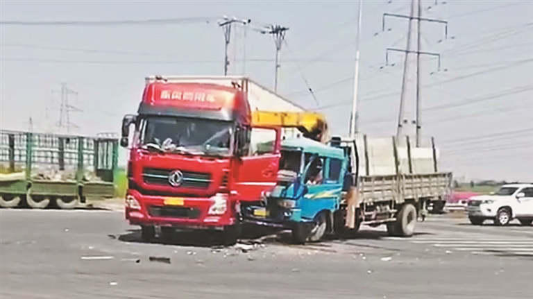 据目击者杨先生介绍,他当时开车经过此处,只听到咣的一声巨响,回头一看,是一辆蓝色随车吊车与一辆红色厢式货车相撞。事故造成随车吊臂撞进红色厢式货车驾驶室,蓝色随车吊车驾驶室严重变形,副驾驶室一名男子被困车内。随后,消防员赶到将其救出,被120送往医院。