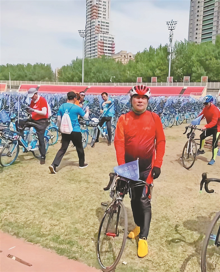 在活动现场,无论是骑行装备,还是队员们的精神面貌,太阳岛双滑骑行团的队员们格外抢眼。73岁的队长刘悦秋告诉记者,他们的团队有50多人,平均年龄60岁左右,平时经常在太阳岛、哈尔滨周边骑行。刘悦秋从2008年开始爱上骑行,2009年,他用时30多天,从哈尔滨骑车到达三亚。骑行团的张秀云表示:“他和队员们骑车走过的地方有很多,比如阿城、大顶山、长岭湖、呼兰河口、伏尔加庄园等,每年的七月末都会举行骑行比赛,不但欣赏到了自然美景,也锻炼了身体。最重要的是,我们通过低碳出行的方式也可以保护环境。”