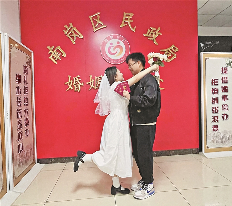 “今年的5月20日恰逢周六,为满足婚姻当事人在这一天办理结婚登记的心愿,我们按照全市统一部署,全体人员放弃休息、上岗服务。”据南岗区民政局婚姻登记处负责人介绍,当天这里的工作人员六点钟就已经到岗开始办理业务,全力保障每对前来办理登记的新人在心仪的“好日子”都能如愿领到结婚证。